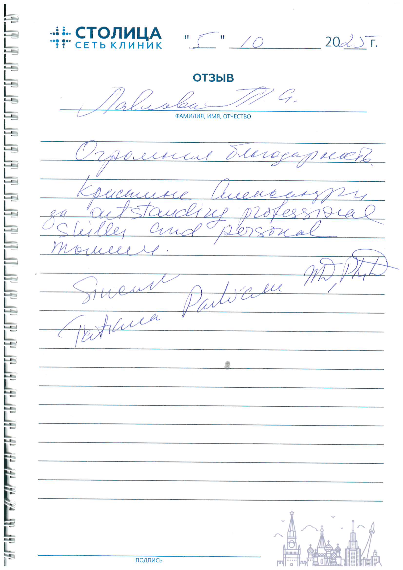 Мы гордимся нашими врачами, которые постоянно повышают уровень своих компетенций: участвуют в семинарах и вебинарах, посещают выставки медицинского оборудования и перенимают опыт зарубежных коллег. Это позволяет предлагать нашим пациентам самые лучшие на сегодняшний день методы диагностики и лечения.