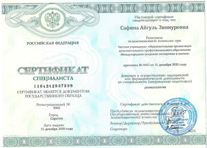 - 2020, Саратов, Частное Учреждение ООО ДПО «Международная академия экспертизы и оценки», специальность «Ревматология»;