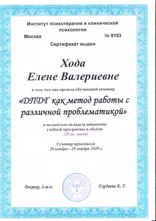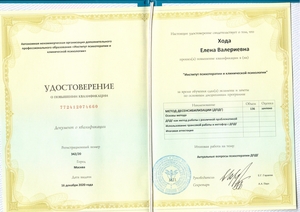 - 2020, Москва, Институт психотерапии и клинической психологии, "Метод EMDR(ДПДГ)";