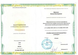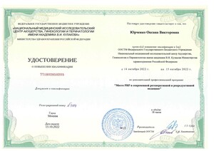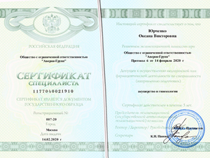 - сертификат "Гинекологическая эндокринология, эмбриология и вспомогательные репродуктивные технологии" (курс в рамках конгресса по репродуктивной медицине, июнь 2006 г.);
