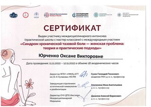 - 2022, Москва, Институт Междисциплинарной Медицины, "Синдром хронической тазовой боли у женщин";