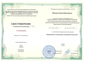 - 2021, Москва, ООСТМ ФГБУ Национальный исследовательский центр Акушерства, Гинекологии и Перинатологии имени академика В.И. Кулакова Минестерства здравоохранения РФ, лапароскопия и гистероскопия в оперативной гинекологии;