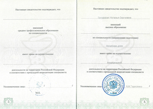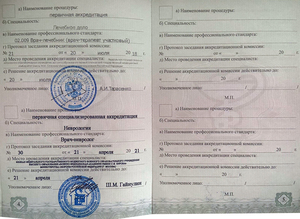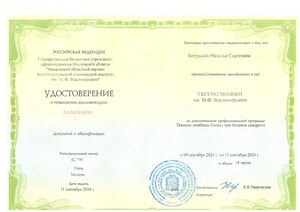 - 2020, Москва, Филиал Военно-медицинской академии имени С.М. Кирова, специальность «Врач-невролог».