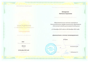 - 2022, Институт междисциплинарной медицины, «Диагностика и лечение головокружения»;