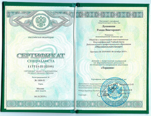 - 2014, «Щелковский наркологический диспансер», профессиональная переподготовка по специальности «Предрейсовые и послерейсовые осмотры водителей";