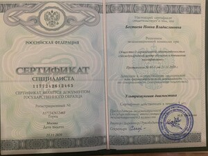 - 2020, ООО «Международный центр обучения и повышения квалификации», «Ультразвуковая диагностика».
