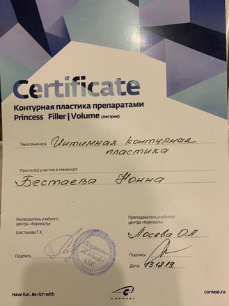 - 2019, Учебный центр «Корнеаль», «Интимная контурная пластика»;