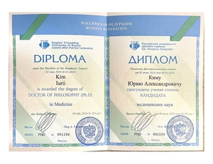 - 2024, Москва, Российский университет дружбы народов им. Патриса Лулумбы, присуждена ученая степень кандидата медицинских наук.