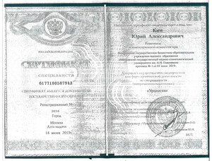 - 2017, Москва, Первый Московский государственный медицинский университет им. И.М. Сеченова, специальность "Лечебное дело";
