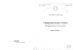 - 2020, Москва, Российский национальный исследовательский медицинский университет имени Н. И. Пирогова, по специальности "Офтальмология".