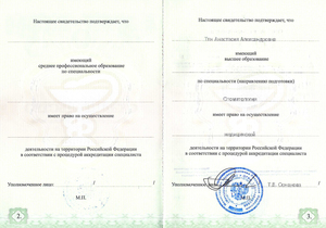 - 2018, Оренбург, Оренбургский Государственный Медицинский Университет, специальность «Стоматолог общей практики»;