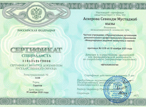 - 2007, 2012, Москва, сертификационный цикл по офтальмологии;