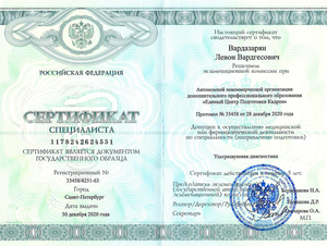 - 2020, Межрегиональный центр непрерывного медицинского и фармацевтического образования, «Актуальные вопросы профилактики, диагностики и лечения новой коронавирусной инфекции COVID-19».