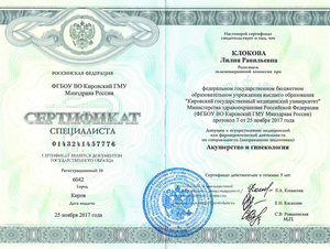 2022, Киров, Кировский государственый медицинский университет, «Акушерство и гинекология».