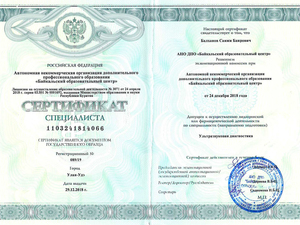2018, Улан-Удэ, Байкальский образовательный центр, специалисть «Ультразвуковая диагностика».