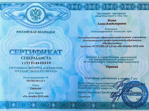 2018, Серпухов, НГОЧУ ДПО Профессионал, профессиональная переподготовка по специальности «Терапия».