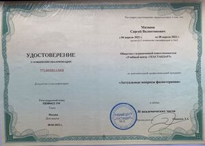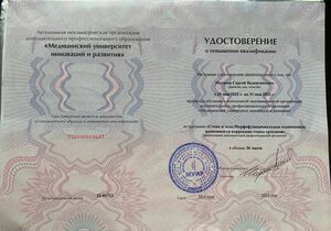 - 2022, Москва, Учебный центр Техстандарт «Актуальные вопросы физиотерапии»;