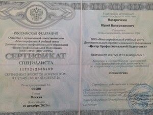 - 2020, Москва, Центр Профессиональной Подготовки, «Онкология»;