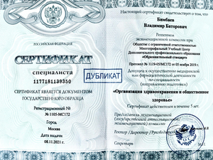 - 2021, Москва, ООО Многопрофильный Учебный Центр Дополнительного профессионального образования "Образовательный стандарт", "Организация здравоохранения и общественное здоровье".
