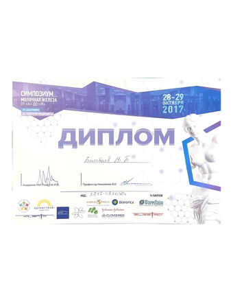 - 2017, Москва, Междисциплинарный симпозиум «Молочная железа от „А“ до „Я“»;