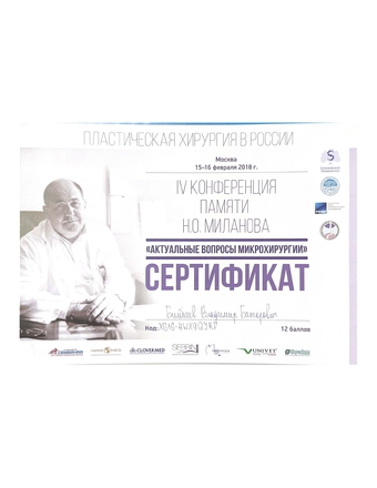 - 2018, Москва, IV Конференция памяти Н.О. Миланова «Пластическая хирургия в России: Актуальные вопросы микрохирургии»;