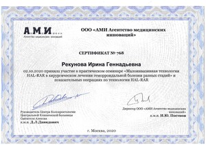 - 2020, Москва, Агентство Медицинских Инноваций, «Малоинвазивная технология HAL-RAR в хирургическом лечении геморроидальной болезни разных стадий»;