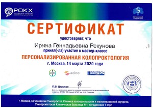 - 2020, Москва, Сеченовский Университет, «Персонализированая колопроктология».