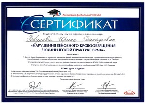- 2016, «Современные подходы к лечению заболеваний периферических артерий нижних конечностей»;