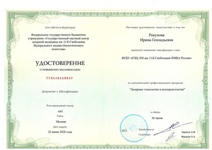- 2020, Москва, Государственный научный центр лазерной медицины ФМБА России имени О.К. Скобелкина, специальность