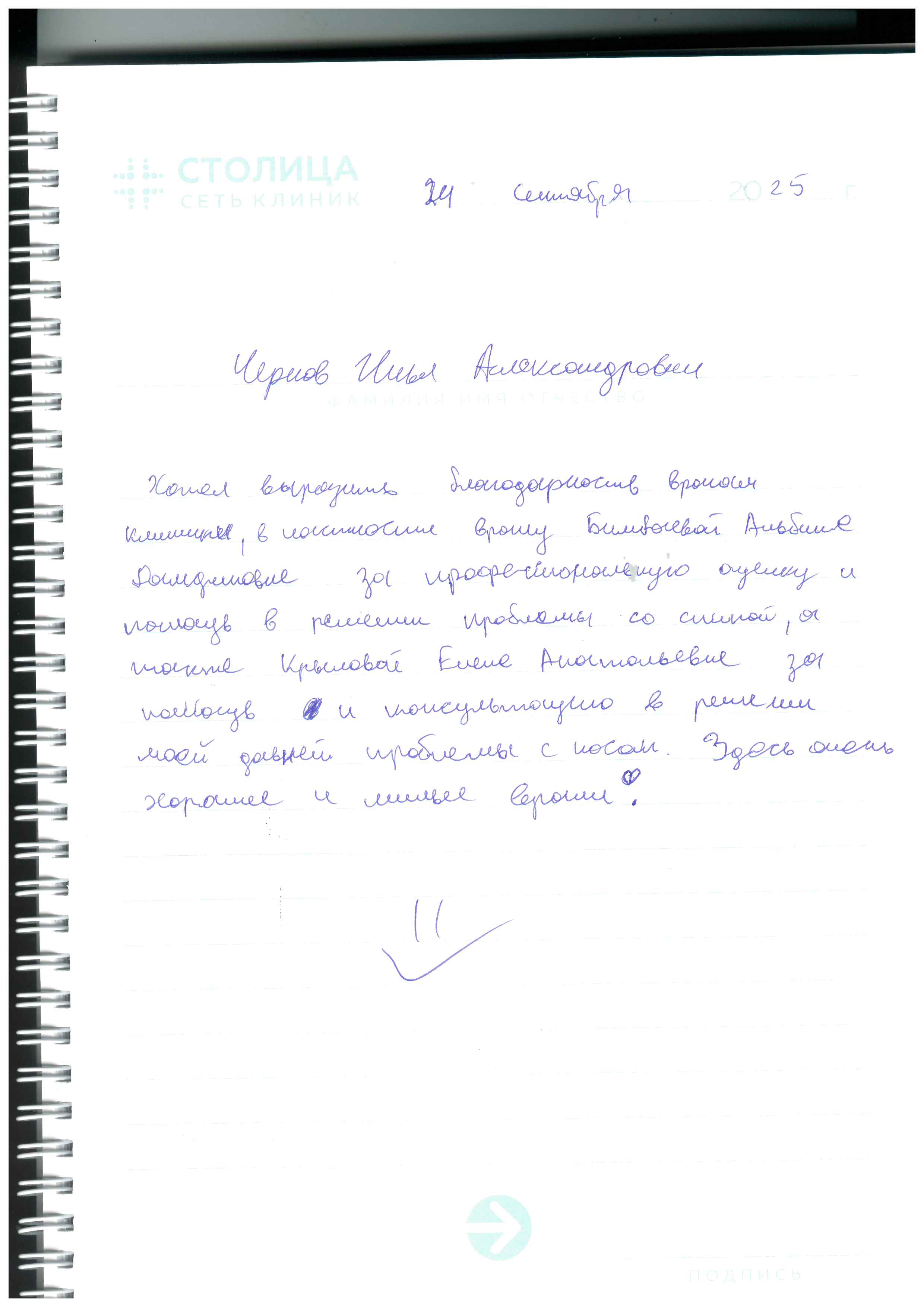 - 2022, Москва, АО «Группа компаний «Медси» Поликлиника N2, специальность «Врач-оториноларинголог».