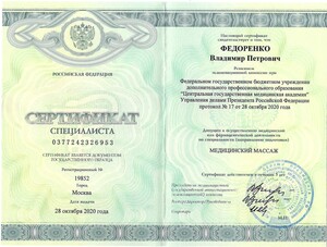 2020, Москва, ФГБУ дополнительного профессионального образования «Центральная государственная медицинская академия» Управления делами Президента РФ, медицинский массаж.