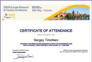 - 2020, Билтховен (Нидерланды), стажировка: «EMDR-терапия (десенсибилизация и переработка движениями глаз) в лечении ПТСР»;