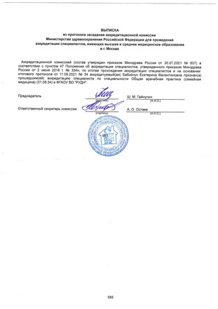 - 2021, Москва, ООО «Институт дополнительного образования и повышения квалификации», курс «Актуальные вопросы профилактики, диагностики и лечения коронавирусной инфекции (COVID-19)»;