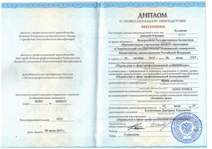 - 2019, Ставрополь, ФГБОУ ВО МЗ РФ «Ставропольский Государственный Медицинский Университет», специальность «Переводчик в сфере профессиональных коммуникаций».