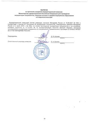 - Ставрополь, ФГБОУ ВО МЗ РФ «Ставропольский Государственный Медицинский Университет», специальность «Травматология и ортопедия»;