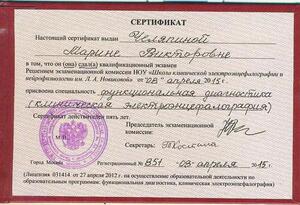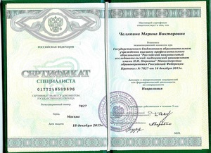 - 2010, Москва, УНМЦ УДП РФ, ординатура по специальности «Неврология».