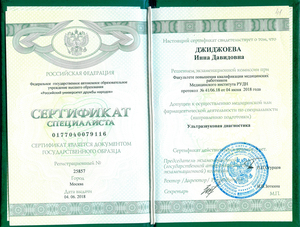 - 2007, Москва, Российская Академия последипломного образования, сертификационные курсы повышения квалификации «Ультразвуковая диагностика»;