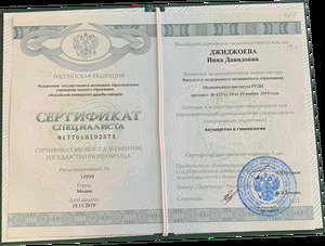 - 2015, Москва, Российский Университет Дружбы Народов, повышение квалификации «Акушерство и гинекология».