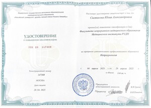 - 2023, Москва, Российский университет дружбы народов имени Патриса Лумумбы, «Нейроурология»;