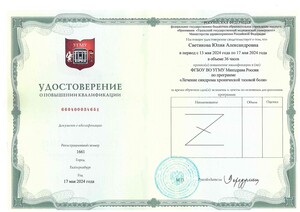 - 2023, сертификат «Специалист по примнению технологии Plasmolifting в гинекологии».