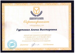 - 2022, повышение квалификации по программе «Рефракионная хирургия», МАМО.