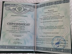 - 2019, Екатеринбург, АНО ДПО ГК ПРОФИ, специальность «Урология».