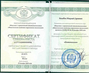 2020, Москва, ООО «Национальная академия современных технологий», рентгенология, специализация «Врач-рентгенолог».