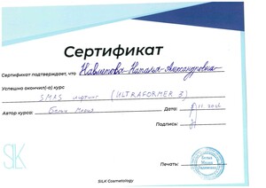 - 2023, Москва, Институт Эстетической Медицины, «Метод контурной пластики в косметологии»;