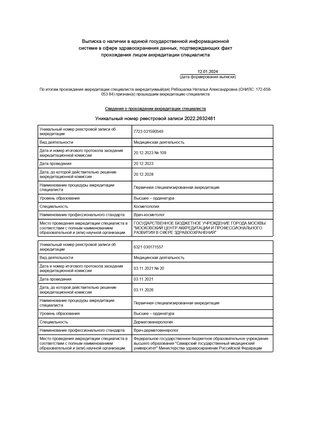 - 2023, Москва, Российский университет дружбы народов им. Патриса Лумумбы, специальность «Косметология».