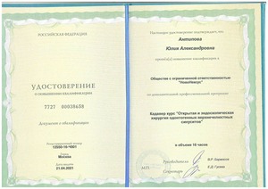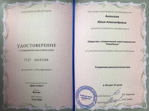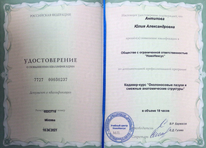 - 2021, Москва, ООО «НовоНексус», курс «Открытая и эндоскопическая хирургия одонтогенных верхнечелюстных синуситов»;