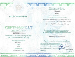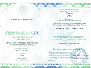 - 2015, Москва, МГМСУ, челюстно-лицевая хирургия, специальность «Врач челюстно-лицевой хирург».
