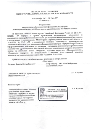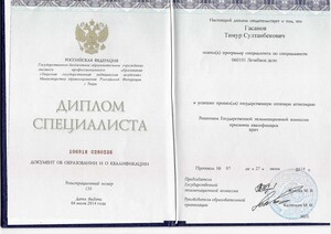 - 2014, Москва, РНИМУ им. Пирогова, специальность «Хирургия».