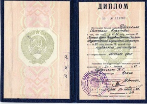 - 1987, Курский Государственный Медицинский университет, специальность «Лечебное дело»;