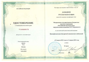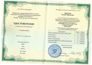 - 2025, Москва, РНЦХ им академика Б.В. Петровского, специальность «Онкология».